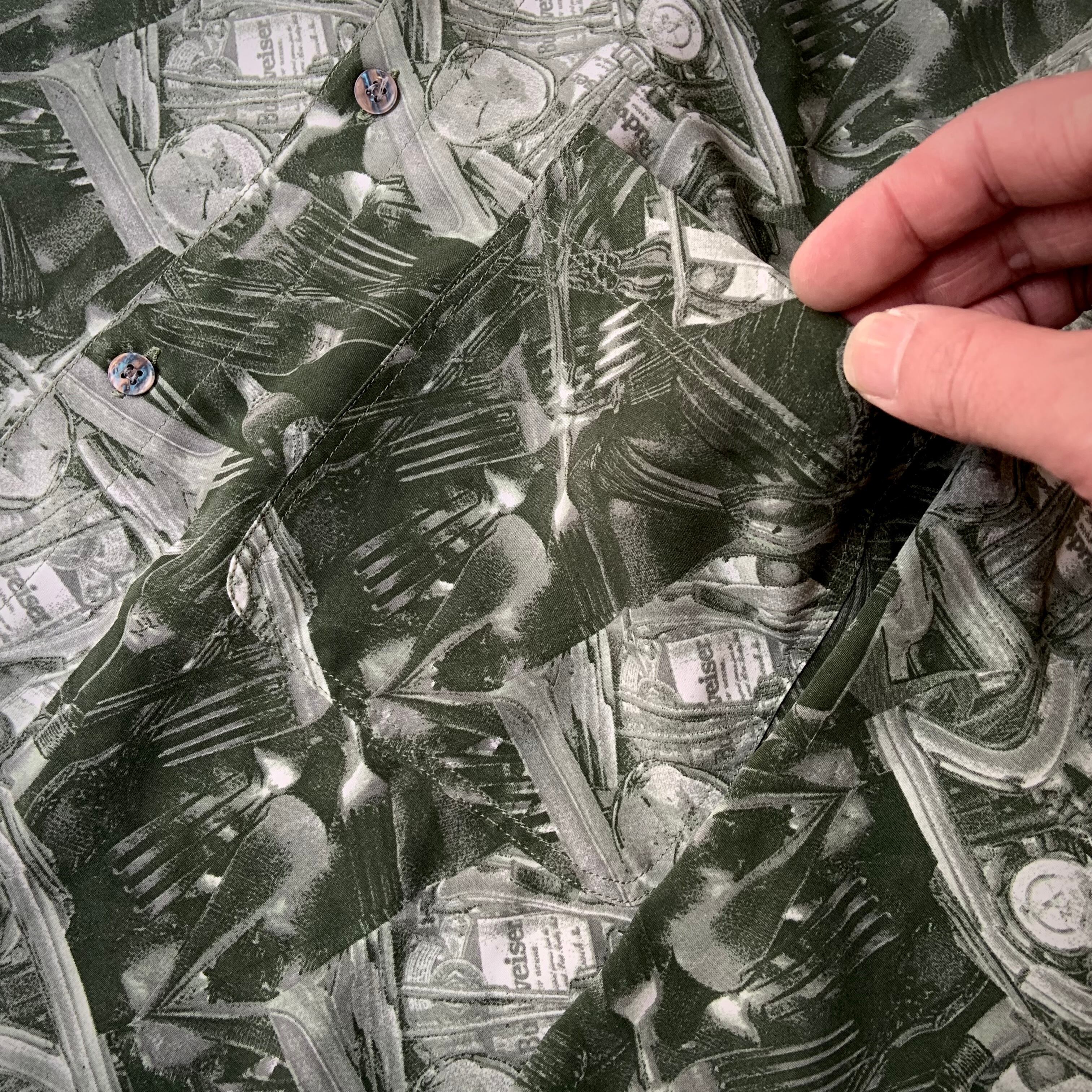 100%レーヨン総柄シャツ。